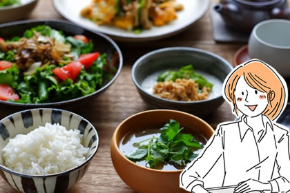 90歳、100歳と長生きする人は実はしっかり食べている人が多く、ちゃんと米飯も食べています。肉や魚などの大きなおかず(たんぱく質)をとりすぎることなく、野菜の小鉢が2~3品で腹八分目というのがその秘訣のようです。