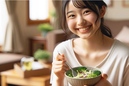 身体はエネルギーが少なくなりすぎたとき、その状況に備えるための「安全機能」が備わっていて、エネルギーをため込む(消費しにくい)よう調整するのです。サラダだけのダイエットではこの安全機能のスイッチが入り、低カロリーなものしか食べていなくても、痩せにくい…ということが起きやすくなってしまいます。